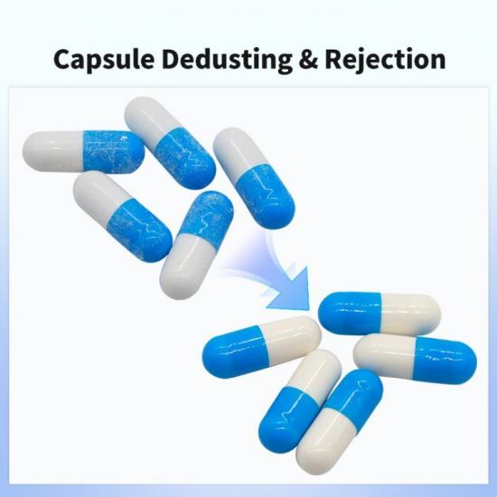 Обеспыливатель капсул оснащен передовым интеллектуальным механизмом отбраковки, который эффективно отбраковывает некачественные продукты. Под действием избыточного давления газа некачественные продукты, такие как капсулы с недостаточным весом и пустые, выдуваются в отбраковочный бункер, в то время как годные капсулы плавно падают в разгрузочное отверстие. Эта интеллектуальная функция отбраковки не только повышает процент годности продукции, но и снижает нагрузку на ручное просеивание, а также повышает эффективность производства. Например, в условиях реального производства интеллектуальный механизм отбраковки может быстро выявлять и отбраковывать некачественные капсулы, обеспечивая качество и стабильность конечного продукта, тем самым повышая эффективность производства и качество продукции предприятия.