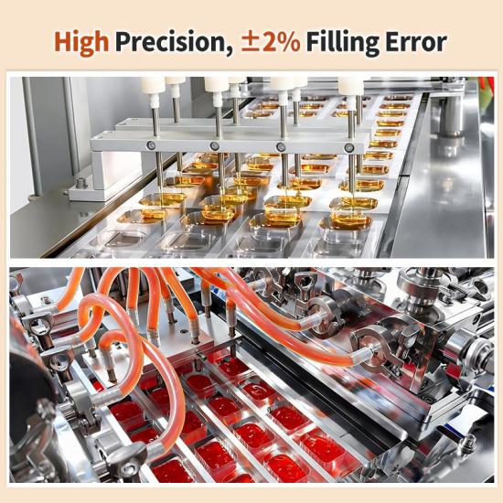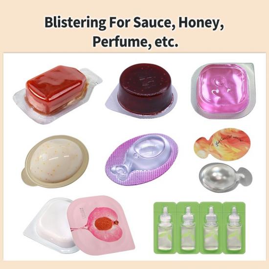 Идеально подходит для упаковки джема, масла, кетчупа, заправок для салатов, шоколадной пасты, жидких приправ и других пищевых продуктов. Функция быстрой смены пресс-форм позволяет адаптироваться к производству различных видов продукции и вкусов, детали, контактирующие с пищевыми продуктами, соответствуют международным стандартам безопасности пищевых продуктов, а стабильная система наполнения и герметизации обеспечивает отсутствие протечек и длительный срок хранения. Независимо от того, нужна ли вам блистерная упаковочная машина для кетчупа, джема, масла или шоколада, наше оборудование предложит идеальное решение.