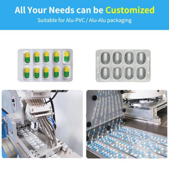 ДПП-90Р мини-блистерная упаковочная машина В основном используется для упаковки различных лекарственных средств, таких как таблетки, капсулы и т. д., в блистерную упаковку. Эта блистерная машина очень гибкая и может работать с различными типами блистерной упаковки, будь то алюминиево-пластиковые или алюминиево-алюминиевые блистерные листы.