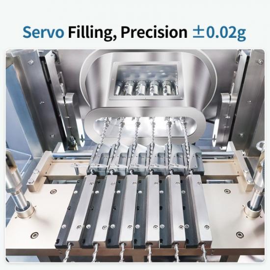 Машина для упаковки саше-стиков RP-SPM нашей компании оснащена системой подачи с полным сервоприводом, что обеспечивает клиентам высокоточное количественное наполнение материалом, что отличается от моделей конкурентов, особенно в фармацевтической промышленности и индустрии пищевых продуктов, гарантируя более высокую точность упаковки.